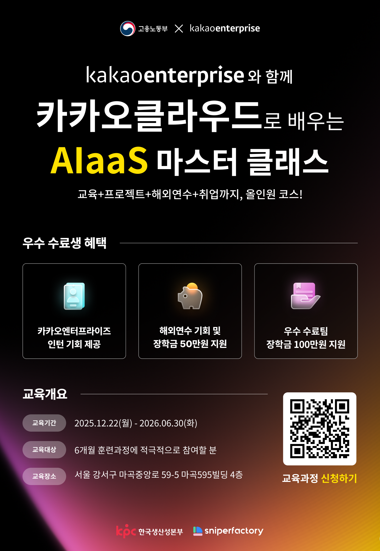 [카카오엔터프라이즈X스나이퍼팩토리] 카카오클라우드 AIaaS 마스터 클래스 4기 모집 홍보 요청 (~12/14)