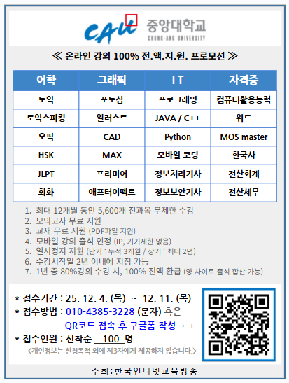 | 다음글 | 2025-2학기 기말시험 시간표 및 강의실 안내 |