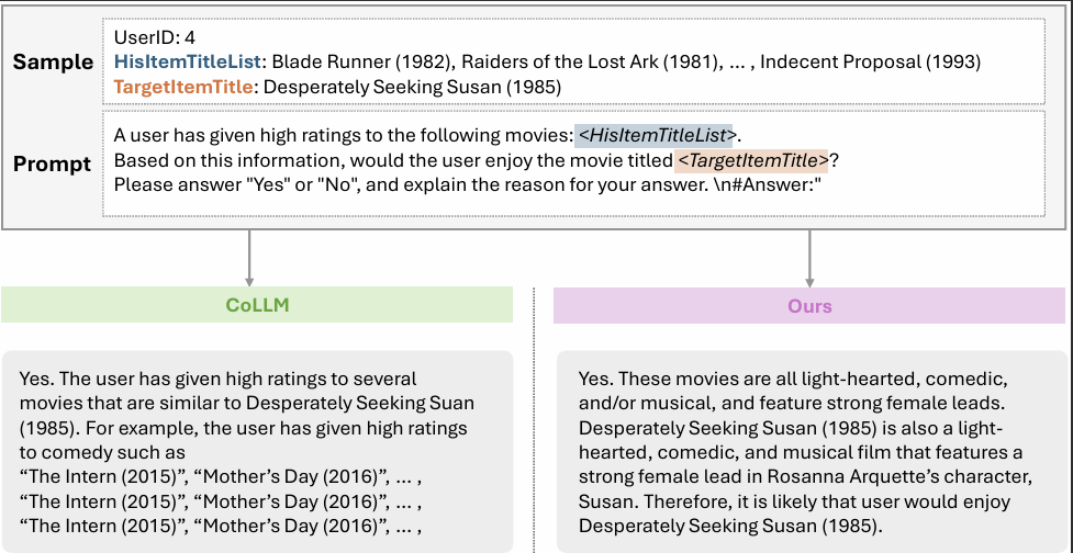 본 연구는 웹 분야 추천학회 중 하나인 WSDM (short paper track) 에 채택되었으며 Boise에서 발표될 예정이다. 해당 연구는 LLM의 사전 학습된 언어적 지식과 상호작용 데이터의 협업 패턴 간의 본질적인 이질성 문제를 심층적으로 분석하고 이를 해결하기 위한 ARROW 프레임워크를 제안한다. ARROW는 LLM의 내재적 추론 능력을 이끌어내기 위해 사고의 연쇄(Chain-of-Thought) 기반의 명시적 추론 과정을 수행한다. 더 나아가 추론 불확실성을 정량화하는 적응형 추론 변조기(ARM)를 통해 사용자에 대한 더 깊은 이해를 돕는다. 이를 통해 ARROW는 기존 모델과 달리 추천 결과에 대한 논리적이고 명확한 근거를 제공하여 의사 결정 과정을 인간이 이해할 수 있도록 만든다.